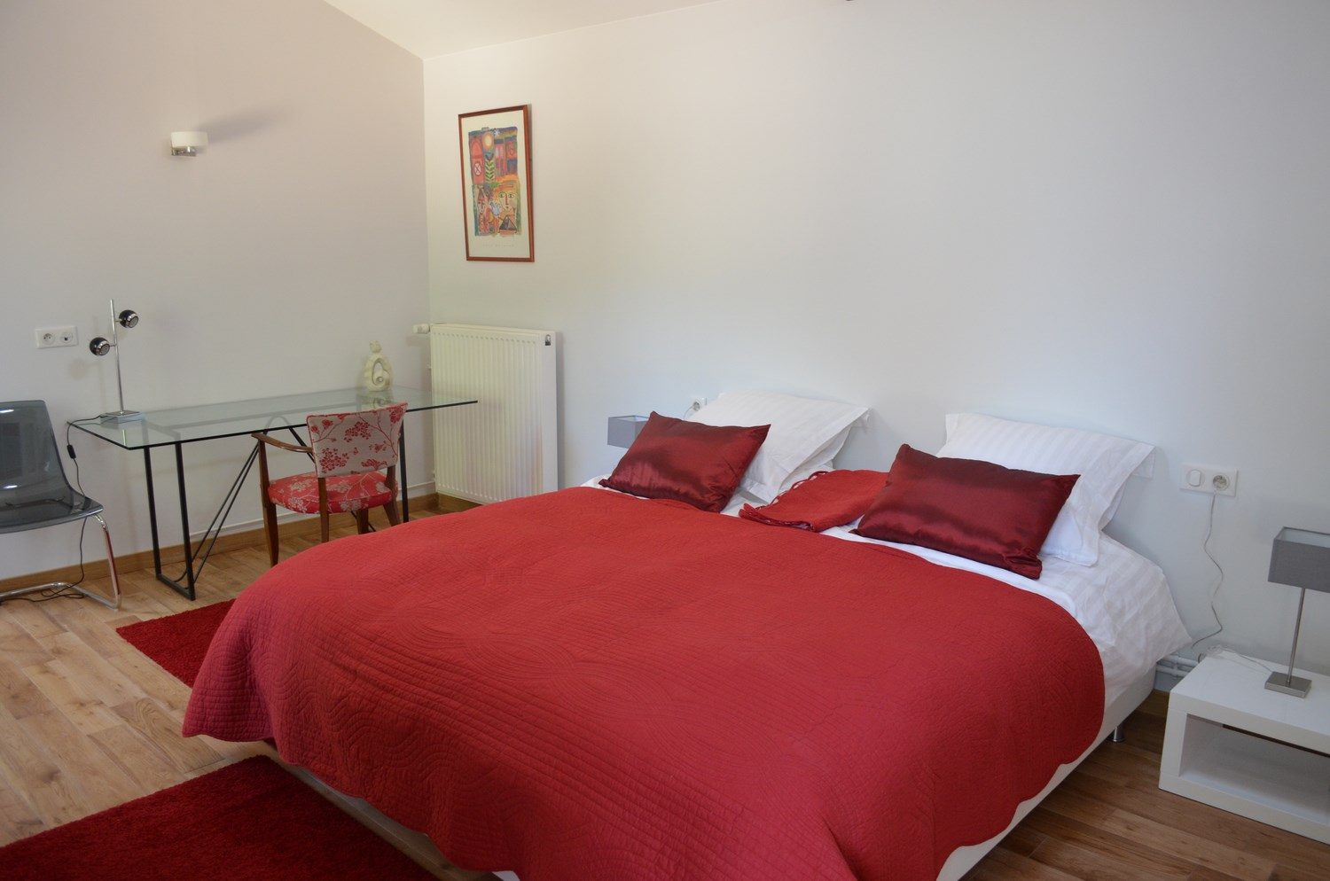 Le gîte, Les chambres La chambre rouge Chambre de charme comprenant une literie haut de gamme (possibilité de séparer en 2 lits 90cm x 200cm) avec une salle de bain (toilettes et douche plain pied) design et des matériaux de très grande qualité. Chambre rouge Image 3 parmi 8